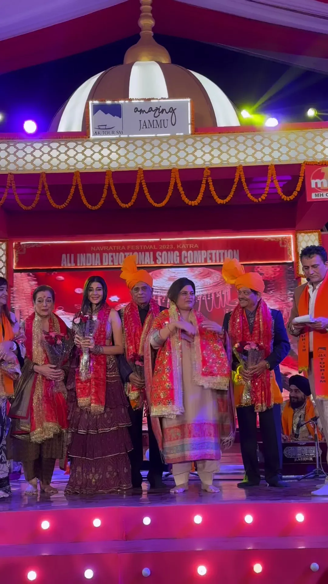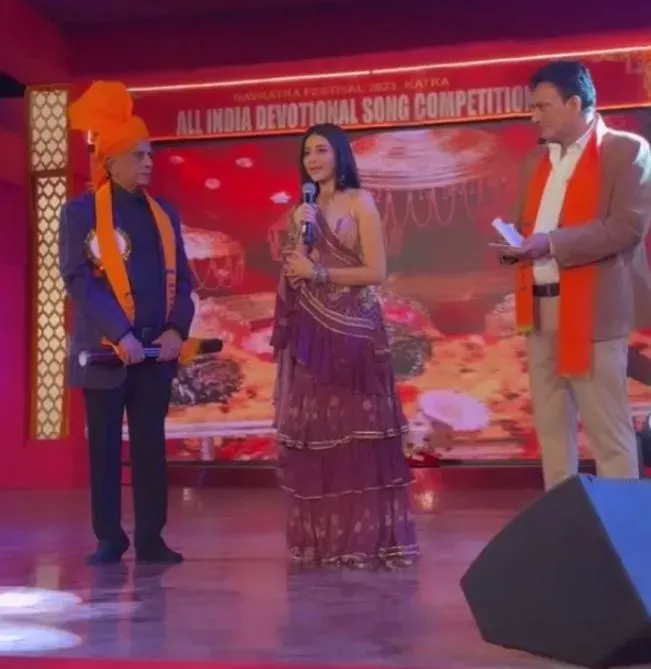 During this ceremony, Nawab Khan Faizi Mishikka Chaurasia participated in the All India Devotional Song Competition in Jammu, Katra along with Poonam Sinha, producer Pahlaj Nihalani and his wife Neeta Nihalani, Ganesh Jain, IGP Anand Jain, DIG Suleman Chaudhary, DC Reasi Babila Rakwal. Launched the spectacular teaser of Anari is Backk with the blessings of Maa Vaishnodevi in the presence of Joint Director Tourism Sunaina Sharma and Rakesh Singh Wazir.