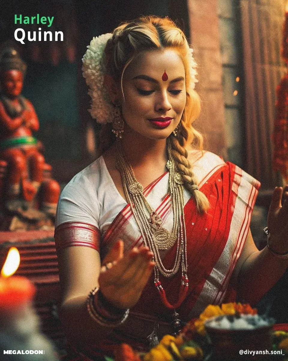 Margot Robbie, who won hearts as Barbie and Harley Quinn looks perfect in the AI image, donning a stunning desi look. Be it the cheeky Harley Quinn, the empowering Barbie or the beautiful Indian diva, Margot Robbie looks perfect in every look she has.