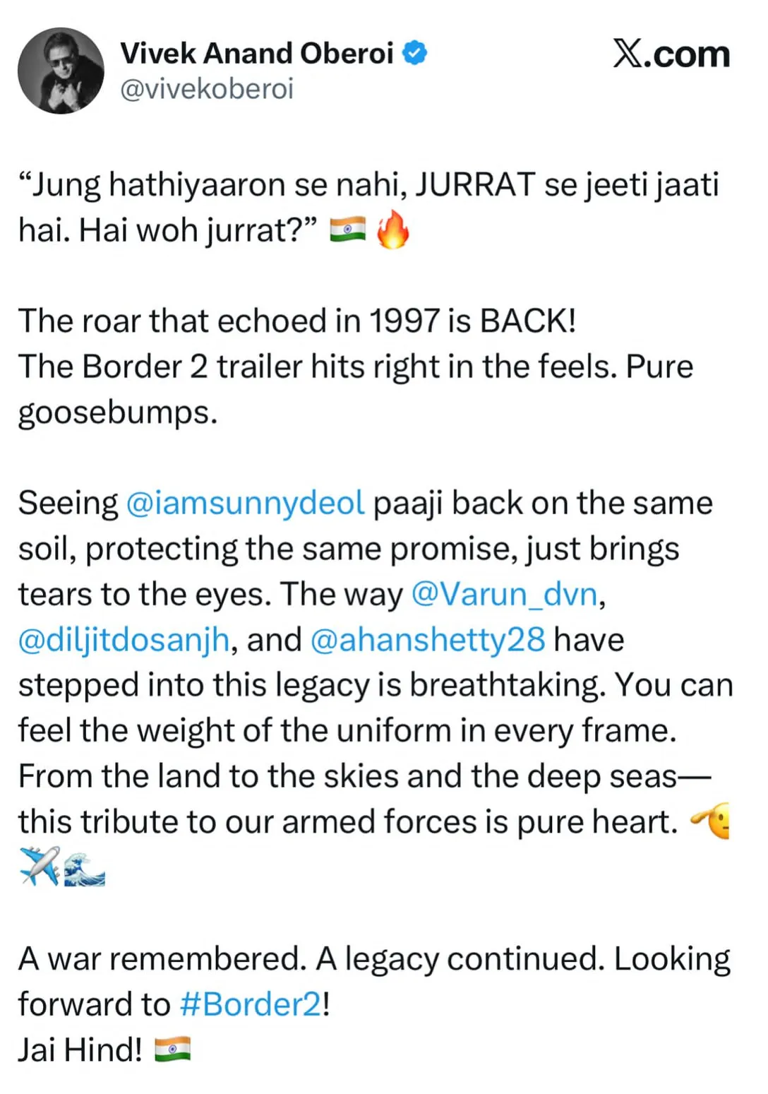 After Elvish Yadav praised the trailer, excitement for the film has increased even more. People are now waiting eagerly for its release. Overall, Border 2 looks like more than just a film. It feels like a big salute to the brave soldiers of the country.