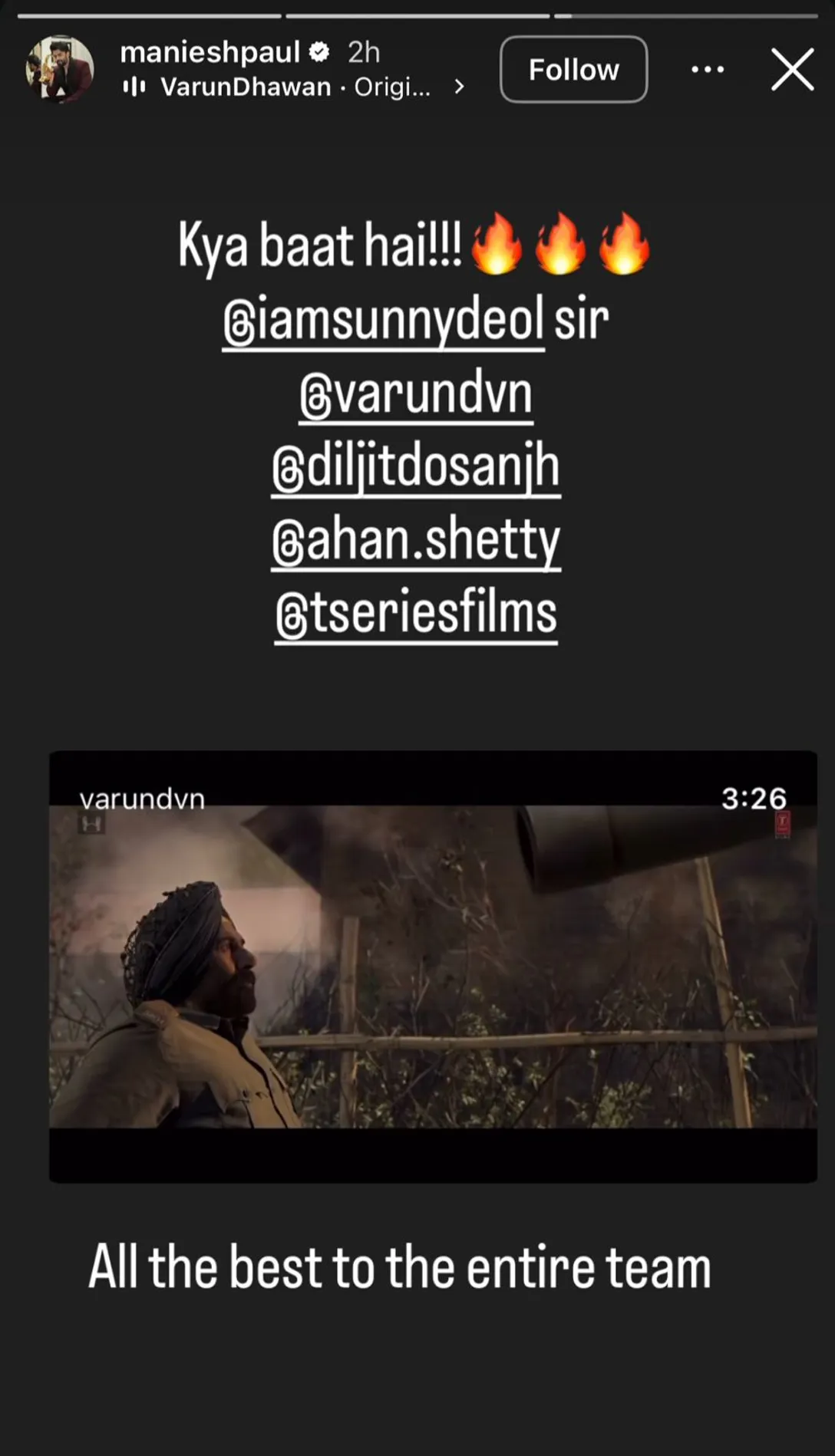 Social media star Elvish Yadav, who is loved by young people, has praised the trailer of the film Border 2. Elvish shared the trailer on his Instagram story and called it “very good.” He said the trailer touched his heart. He specially praised Varun Dhawan and appreciated his role as a Haryanvi soldier. Elvish said Varun’s looks and acting are very powerful. He also wished the entire team all the best and hoped the film would become a super hit.