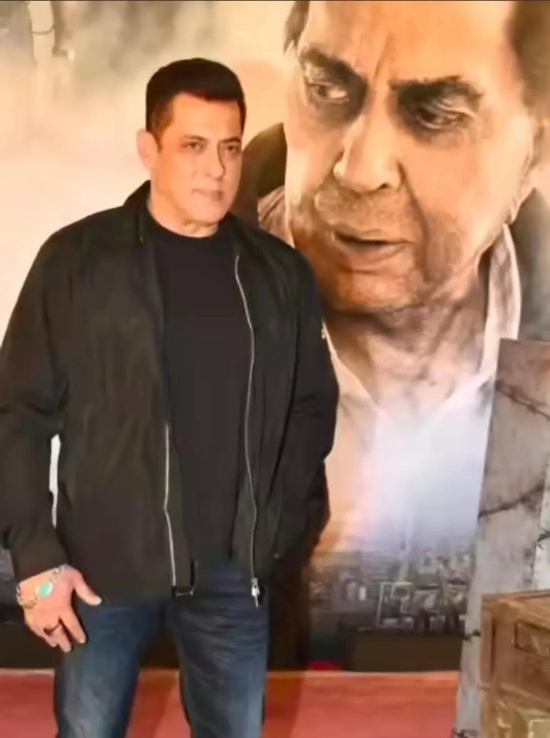 Bollywood superstar emotional Salman Khan also attended the Ikkis premiere and was seen standing in front of Dharmendra’s poster, admiring it with tears in his eyes.. Salman and Dharmendra shared a close bond over the past four decades. The heart-throb ageless actor, who recently turned 60, looked visibly emotional while posing against Dharam-paaji's poster at the premiere