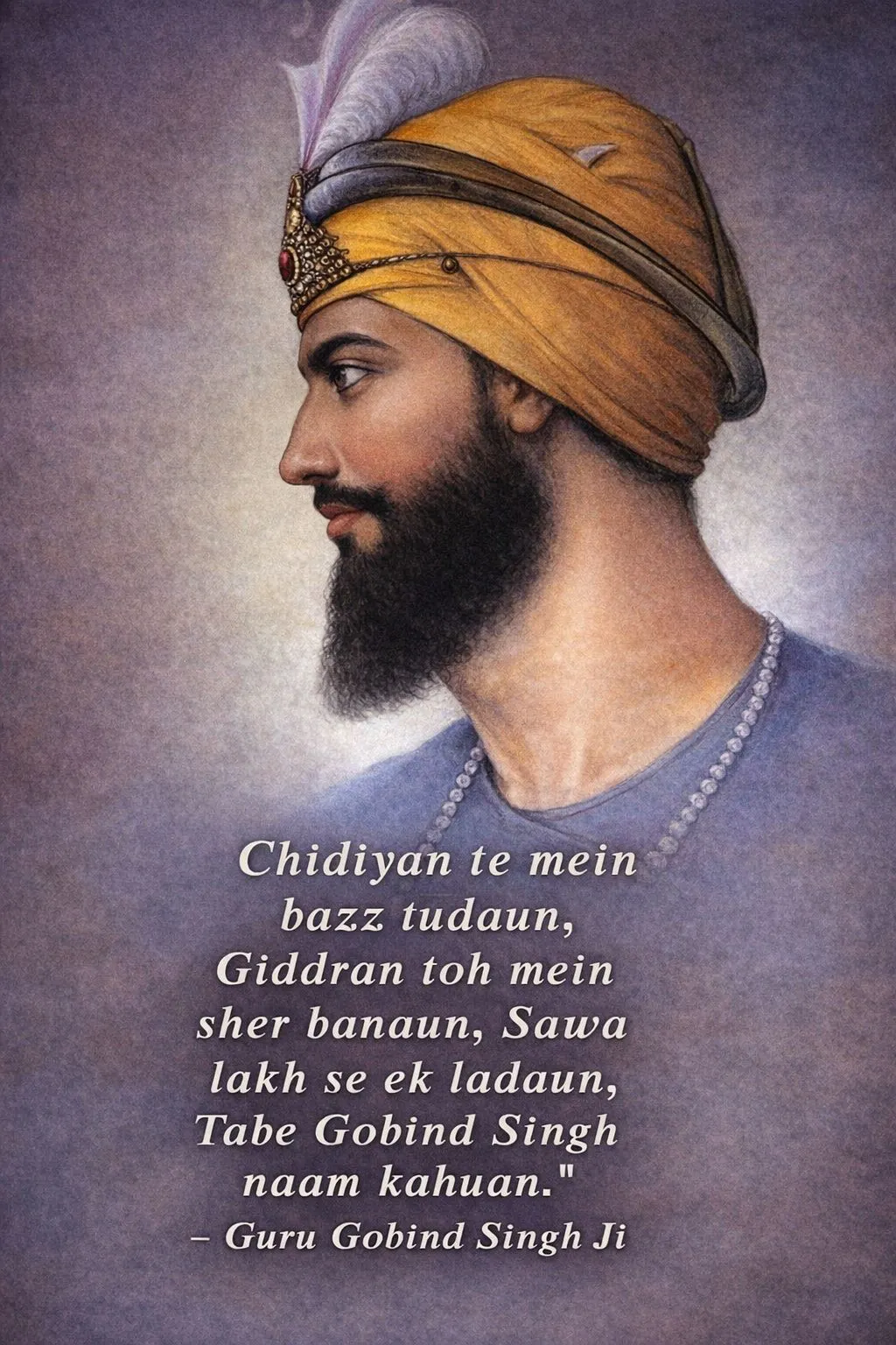 Guru Gobind Singh Sahib was the tenth and last Guru of Sikhism. He was not only a great spiritual master but also an extraordinary warrior, poet, philosopher, and social reformer. He devoted his entire life to serving humanity, protecting righteousness, and fighting injustice. His teachings continue to inspire people to walk the path of courage, equality, and truth. On the day of Baisakhi, Guru Gobind Singh Ji established the Khalsa Panth, giving Sikhism a new and powerful identity. He taught Sikhs to always remain ready to protect faith, self-respect, and justice. His father was Guru Tegh Bahadur, and his mother was Mata Gujri.