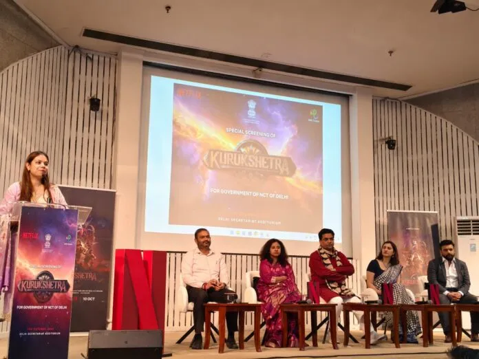 On Friday, October 3, a special screening of the historical animated series Kurukshetra , set to release on the OTT platform Netflix (Netflix), was held at the Delhi Secretariat. The event was graced by the Minister of Art, Culture, Language, and Tourism, Kapil Mishra, as the chief guest. The event was also attended by Tourism Secretary and Managing Director of DTTDC Niharika Rai, Netflix India Public Policy Director Mahima Kaul writer-director Ujaan founder of the popular magazine Mayapuri P. K. Bajaj students of Delhi College of Arts, senior government officials, and several distinguished guests.