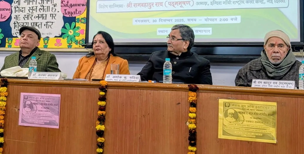 The Mewar Group of Institutions, Vasundhara, annually honors a journalist with the ‘Patrakaar Bhushan’, a literary figure with the ‘Sahityakaar Bhushan’, and four journalists with the ‘Patrakaar Gaurav’ award on the occasion of Mahamana Pandit Madan Mohan Malaviya's birth anniversary. This is the 21st year of this event. This year, Pradeep Sardana has been awarded with the Patrakaar Bhushan, while renowned literary figure Prof. Anil Rai has been awarded with the 'Sahityakar Bhushan' award, and senior journalists Alok Dwivedi, Ashutosh Gupta, Dr. Mahkar Singh, and Ashok Kaushik have been honored with the 'Patrakaar Gaurav' award.