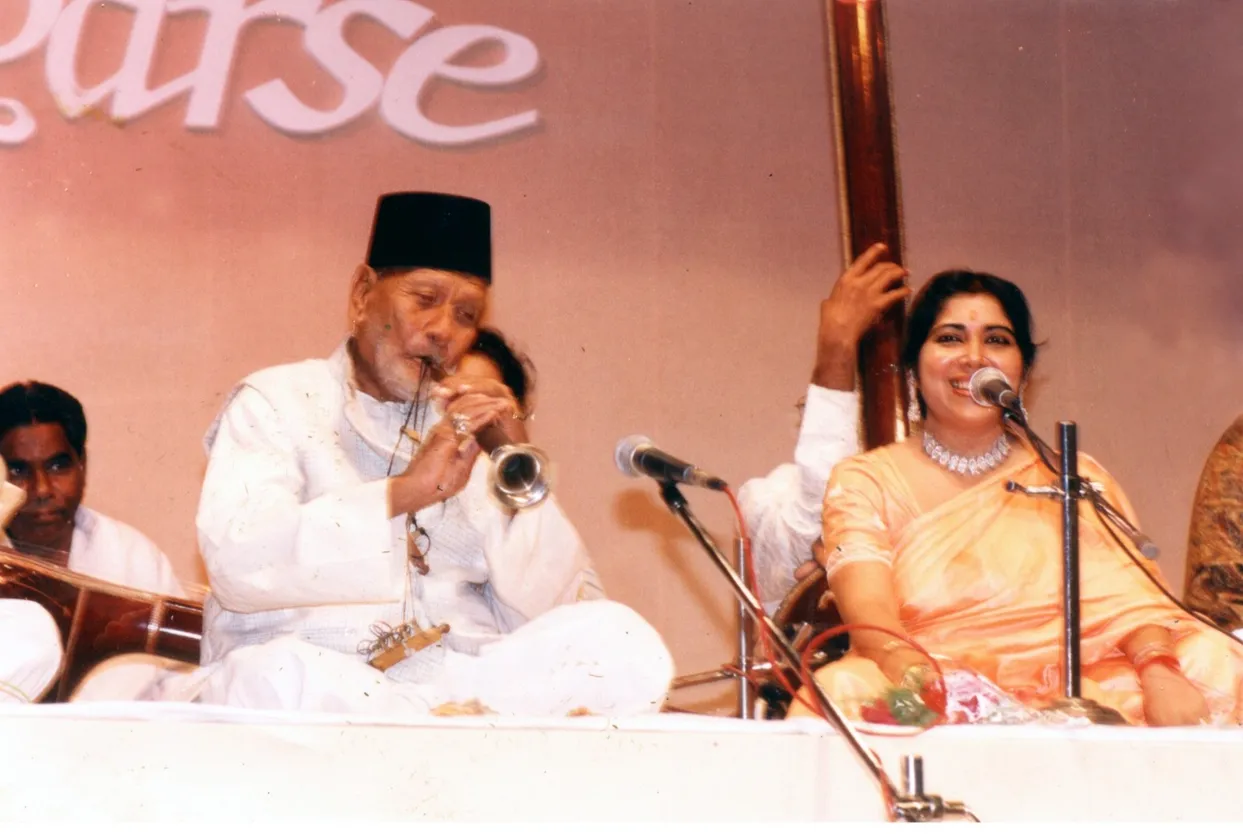 Our first meeting has a very unique story. In 2000, after the sudden demise of my guru, Mrs. Bageshwari Devi, I organized a music program at Nehru Centre, Mumbai, in her memory, and we invited Bismillah Khan Ji. Actually, my guru, Mrs. Bageshwari Devi, used to reside in Vindhyachal, where I used to go to learn music from her. She always told me that even after she is gone, I should continue performing shehnai music because it is precious. She was a pure singer of Banaras, and we performed in her style. Her sudden demise was shocking.