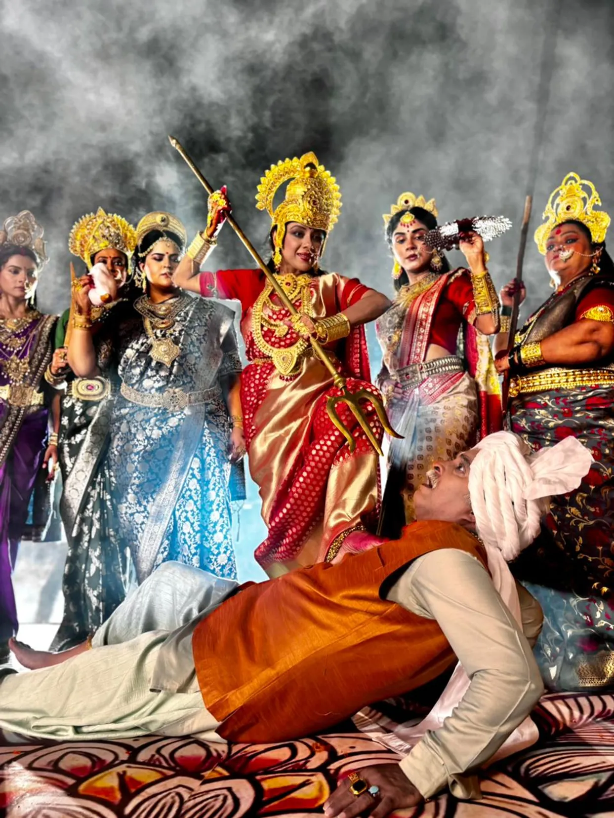 The episode opens with a festive backdrop — diyas flickering, villagers watching in anticipation, and the air charged with tension. As Anupama confronts the menacing Prakash Bhau, her aura exudes the divine energy of Lakshmi Maa, symbolizing wealth, strength, and the power to restore justice. With unwavering determination and a firm grip on her trishul, she embodies courage and moral righteousness, her every movement radiating divine intensity.