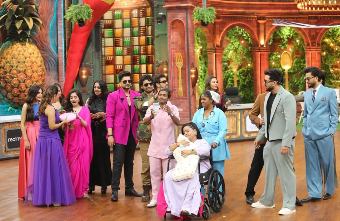 After welcoming her second baby, lovingly nicknamed Kaju, Bharti Singh makes her grand return to hosting the show. In a moment that melts hearts across the kitchen, Bharti proudly shows everyone Kaju’s picture, marking the little one’s first-ever public appearance on the show.